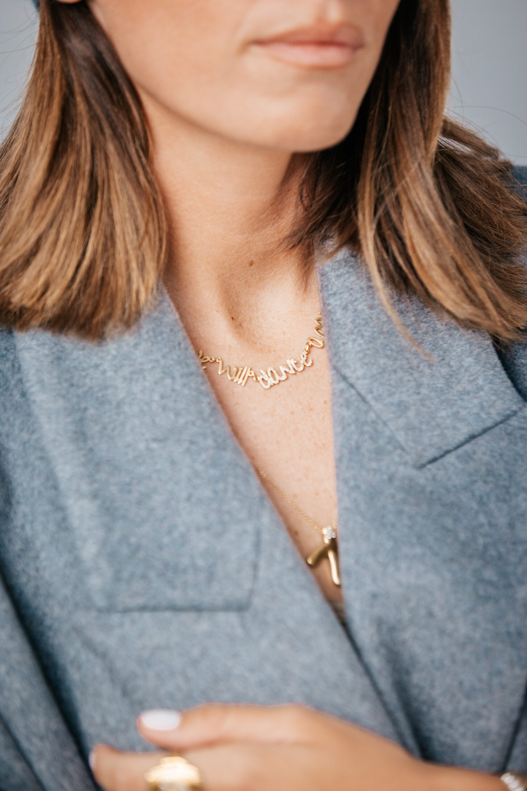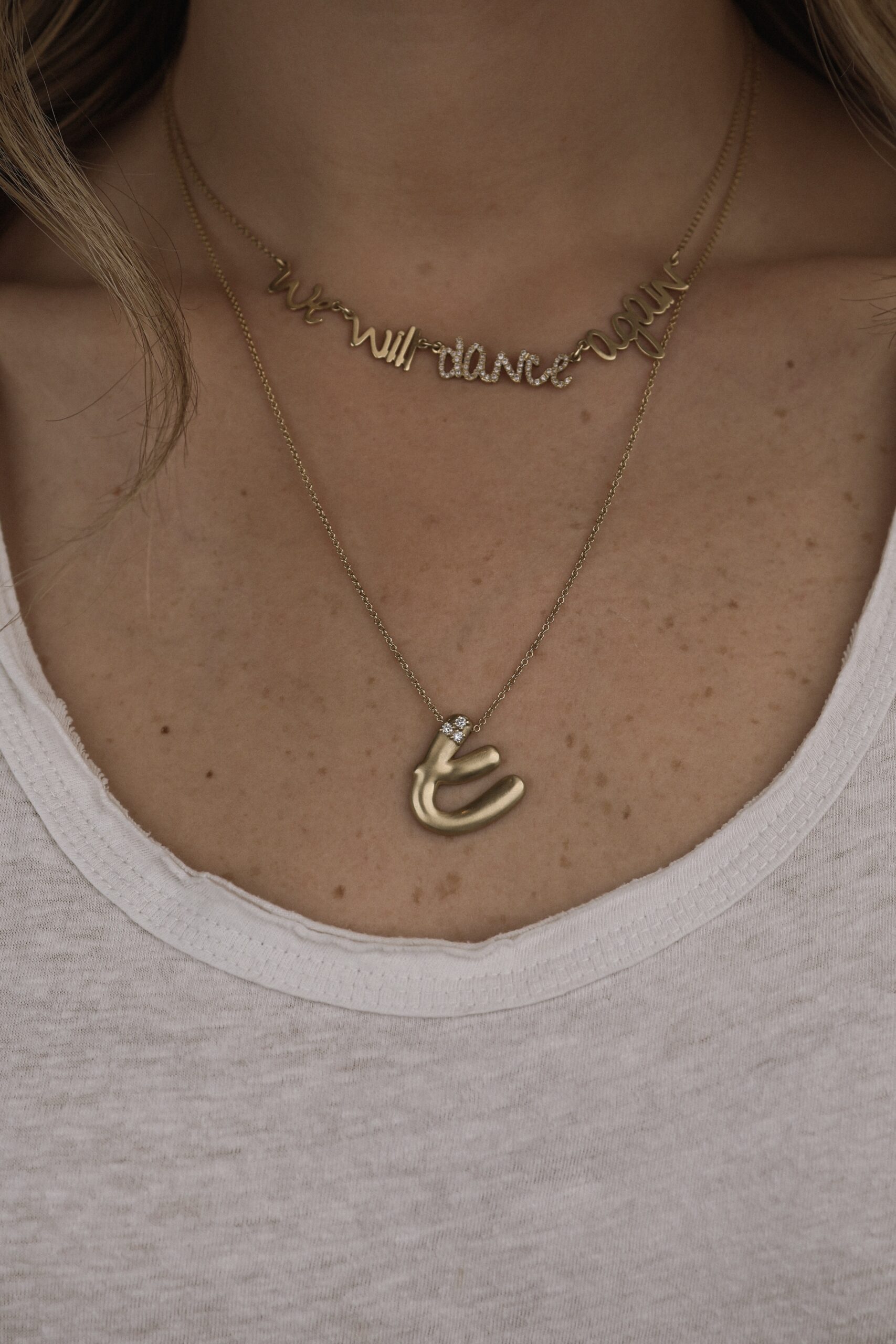 Type de produit : Collier en or 14k, le mot ‘danse’ est sertis de diamants